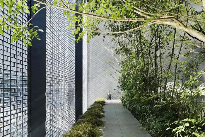 簡單的垂直長條紋,延伸并折射被阻擋的物體,給人垂直拉伸的視覺體驗。