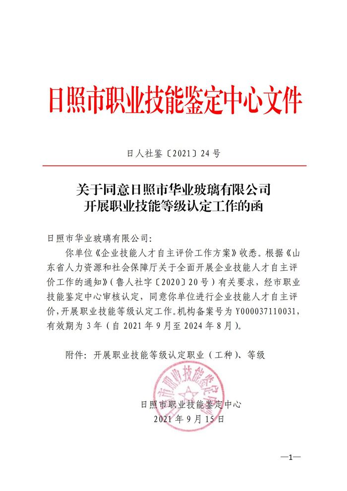 2021年9月15日,經(jīng)日照市職業(yè)技能鑒定中心審核認(rèn)定,同意我公司進(jìn)行企業(yè)技能人才自主評(píng)價(jià),開展職業(yè)技能等級(jí)認(rèn)定工作。